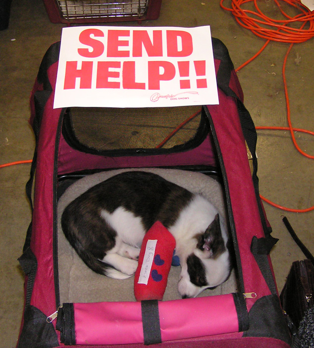 The show vet bandaged up the leg (for a good price) and sent us on to an emergency vet clinic a few miles away. While back at the show I was in the group ring with Nikki, Pilot was having radiographs done of his poor little leg. The pictures didn’t show a break and we thought that we were home free.