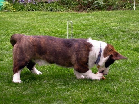 Playing croquet? Or eating the wooden ball? Oh, I guess it’s a bone.