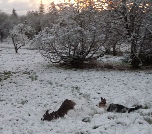 The last work day of the year and I should have gone in early. But I just had to let Kady play in the first snow of her young life. And to photo-document of course.