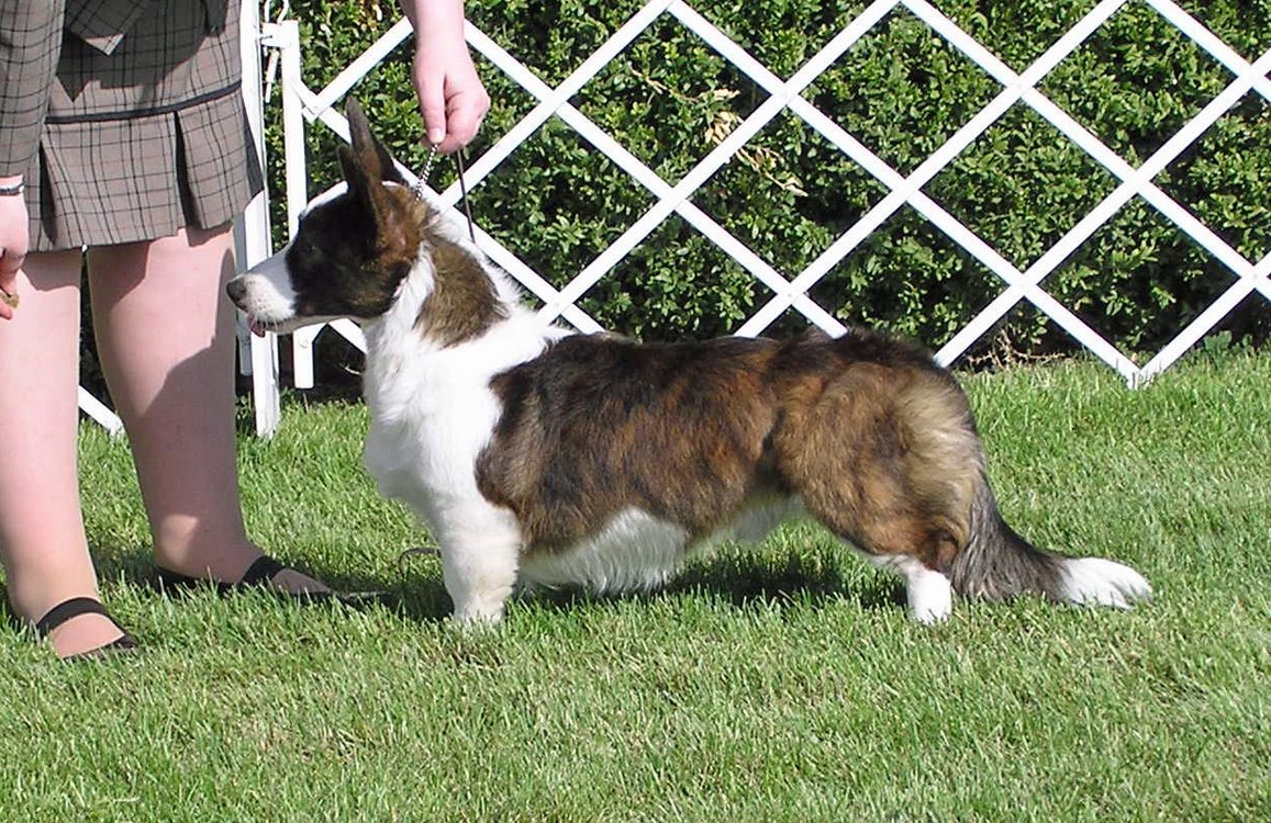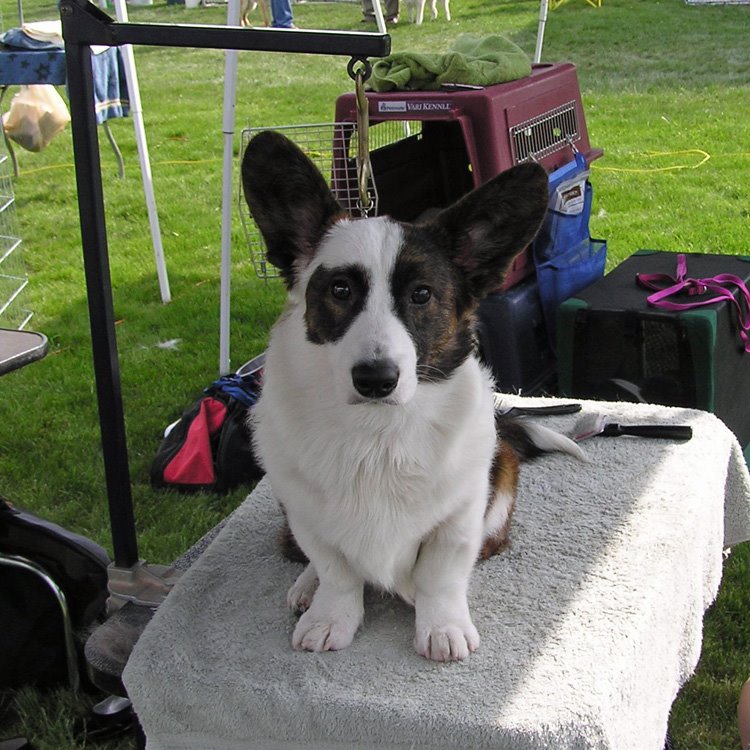 Pilot is growing up. Here he is at 6 months, 1 week, 2 days old. He was best Bred-by exhibitor Cardigan both days over 4 bitches, and Group IV bred-by on Saturday with 8 breeds showing. Mandy and Henry elected not to stay for bred-by groups on Sunday since Wally didn’t win and I don’t blame them.