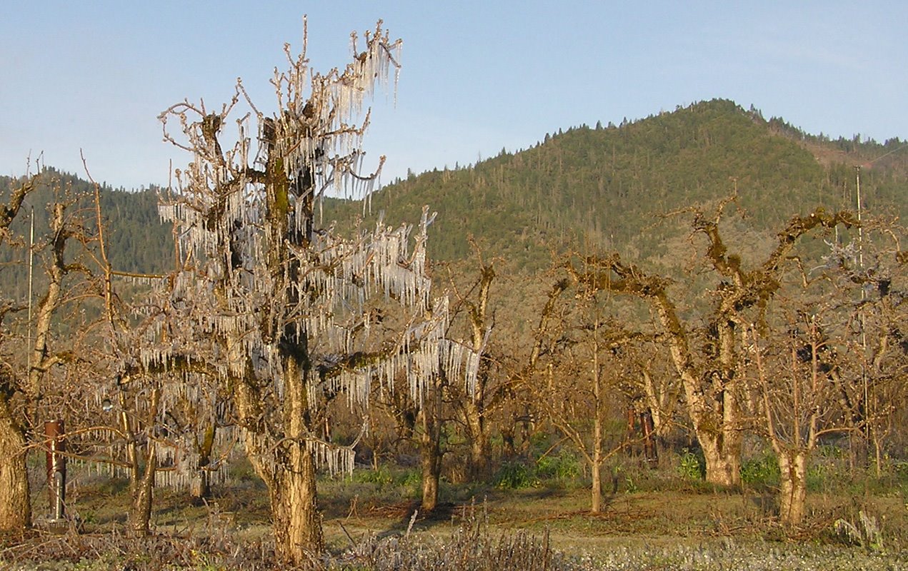 Many of the orchards like the one down at the corner use sprinklers. This has the effect of creating what I can’t help but think of as beautiful ice-fairy trees.