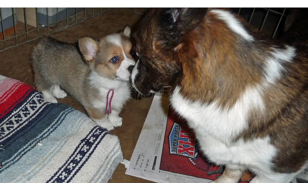 I let Molly visit the pups. After all, she might get to be a mother some day. And she enjoyed playing with Gretta in the motel room in Portland.