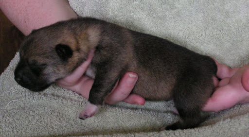 Here’s Cenwyn at home with his sisters Sadie (the dark brindle, Kimi-Willow’s litter sister) and Allis (Wally and Go-Go-‘s litter sister). Yes, his blue “sister” does dwarf him.